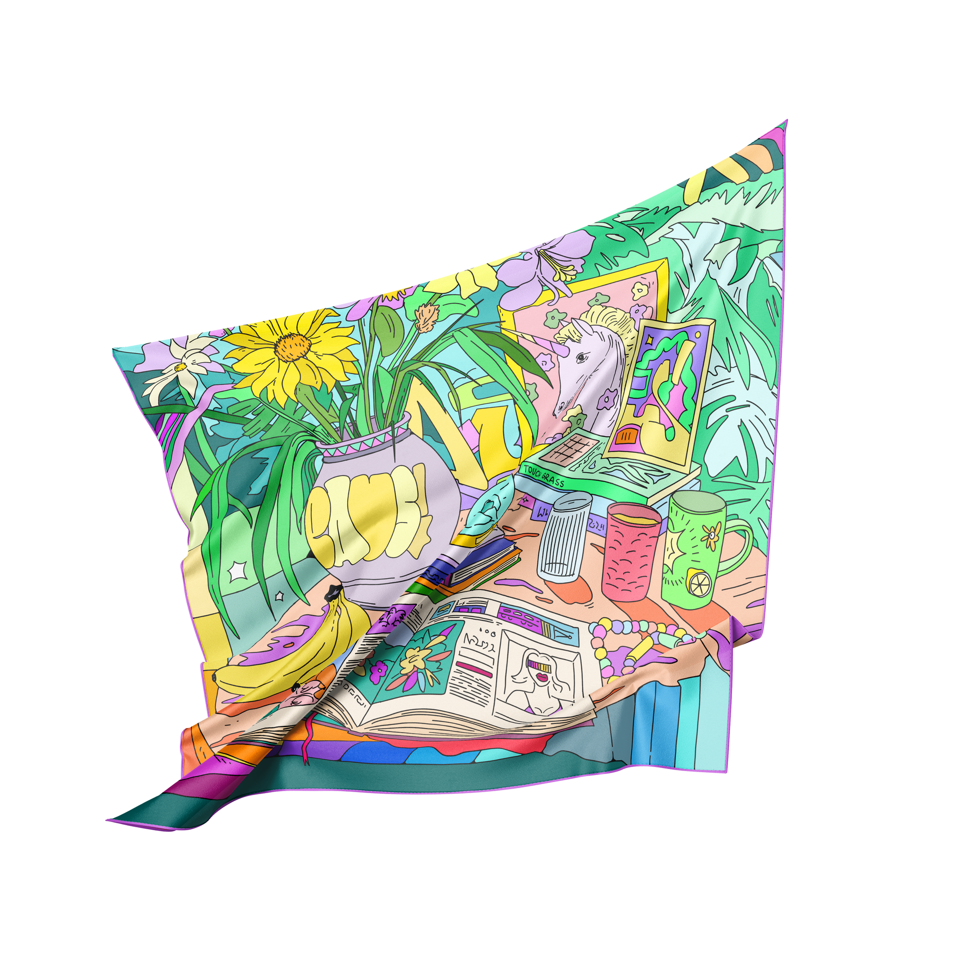 Equal parts vaporwave and tropical graffiti. “Pet” blends houseplant aesthetics with layered textures and architectural rhythm. A visual breath of fresh, filtered air — wearable like a memory.